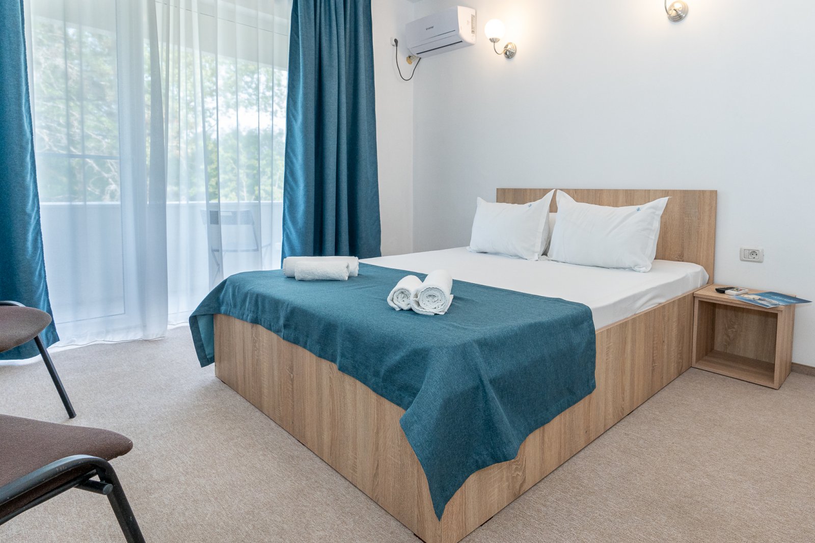 Mera Holiday Resort este compus din două corpuri de hotel, Anca și Irina, și dispune de 262 de spații de cazare. Poți alege între camere duble, camere triple sau apartamente, toate fiind amenajate pentru a-ți oferi confortul de care ai nevoie. Indiferent de mărimea familiei tale, vei găsi cu siguranță o unitate de cazare care să răspundă nevoilor tale. Pentru cei mici, cu vârsta sub 3 ani, resortul oferă gratuit (în limita disponibilității) pătuțuri tip țarc, astfel încât să nu îți faci griji suplimentare! În plus, camerele noastre moderne îți asigură și acces gratuit la Wi-Fi pentru a ține legătura ușor cu cei de acasă, dar și un seif pentru a-ți păstra în siguranță obiectele de valoare! Poți opta pentru camere ușor accesibile, situate la parter, dar și pentru variante la etaj, cu balcon.